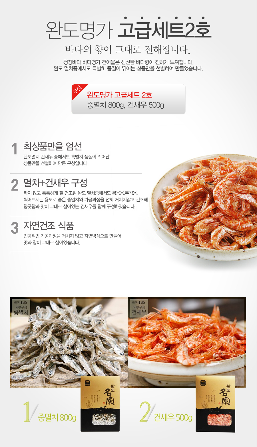 - 포장단위별 내용물의 용량(중량), 수량, 크기: 중멸치800g, 건새우500g