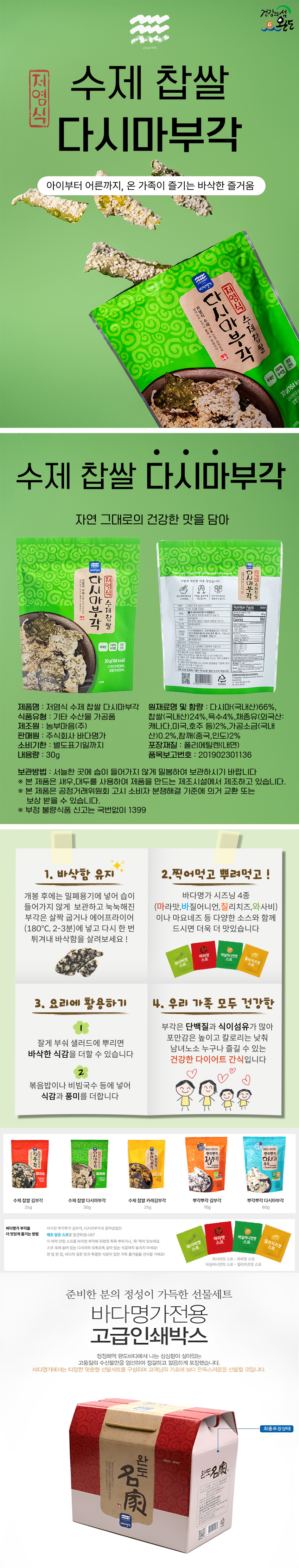 - 제품명: 수제찹쌀다시마부각세트 / 중량 : 30g x 5봉