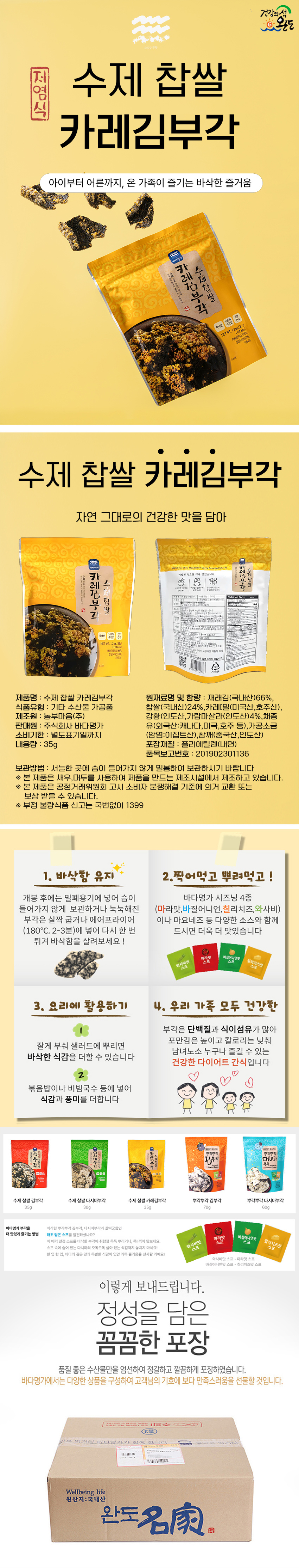 - 포장단위별 내용물의 용량(중량), 수량: 수제 찹쌀 카레김부각 / 중량 : 35g
