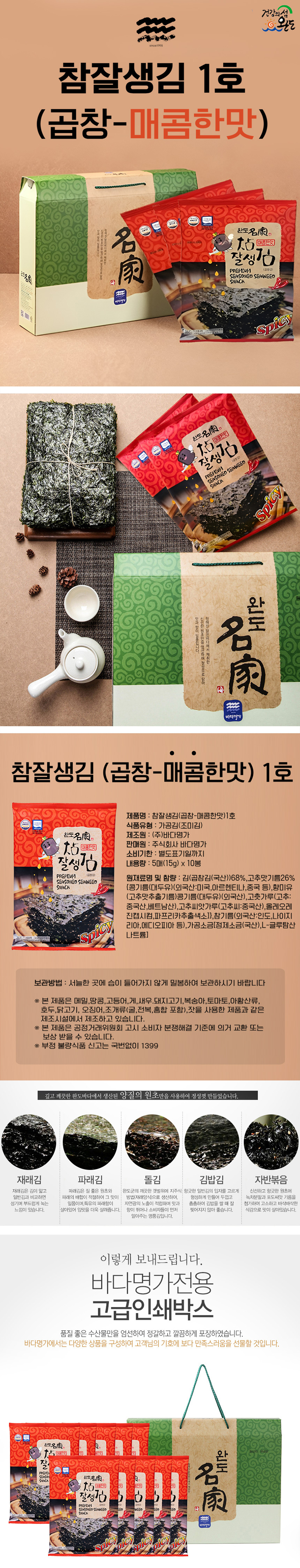 HOME > 선물세트 > 구이김 선물세트1 > S90-바다명가 참잘생김(곱창김-매콤한맛)(조미)선물세트 1호