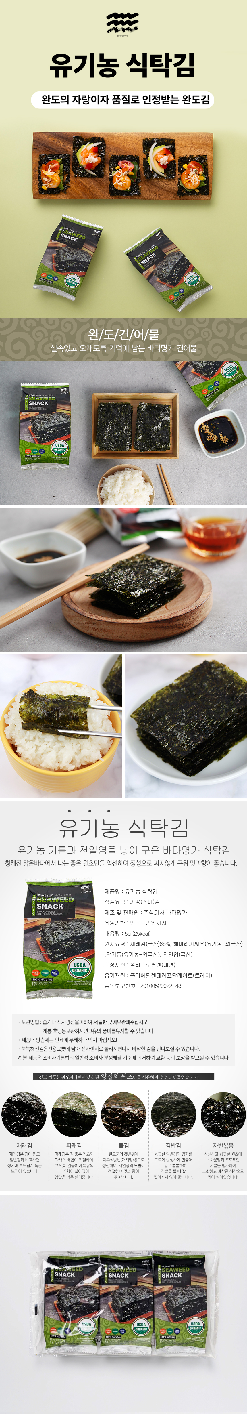- 제품명: 유기농 식탁김 / 중량(입수량) : 9매(5g)x30봉
