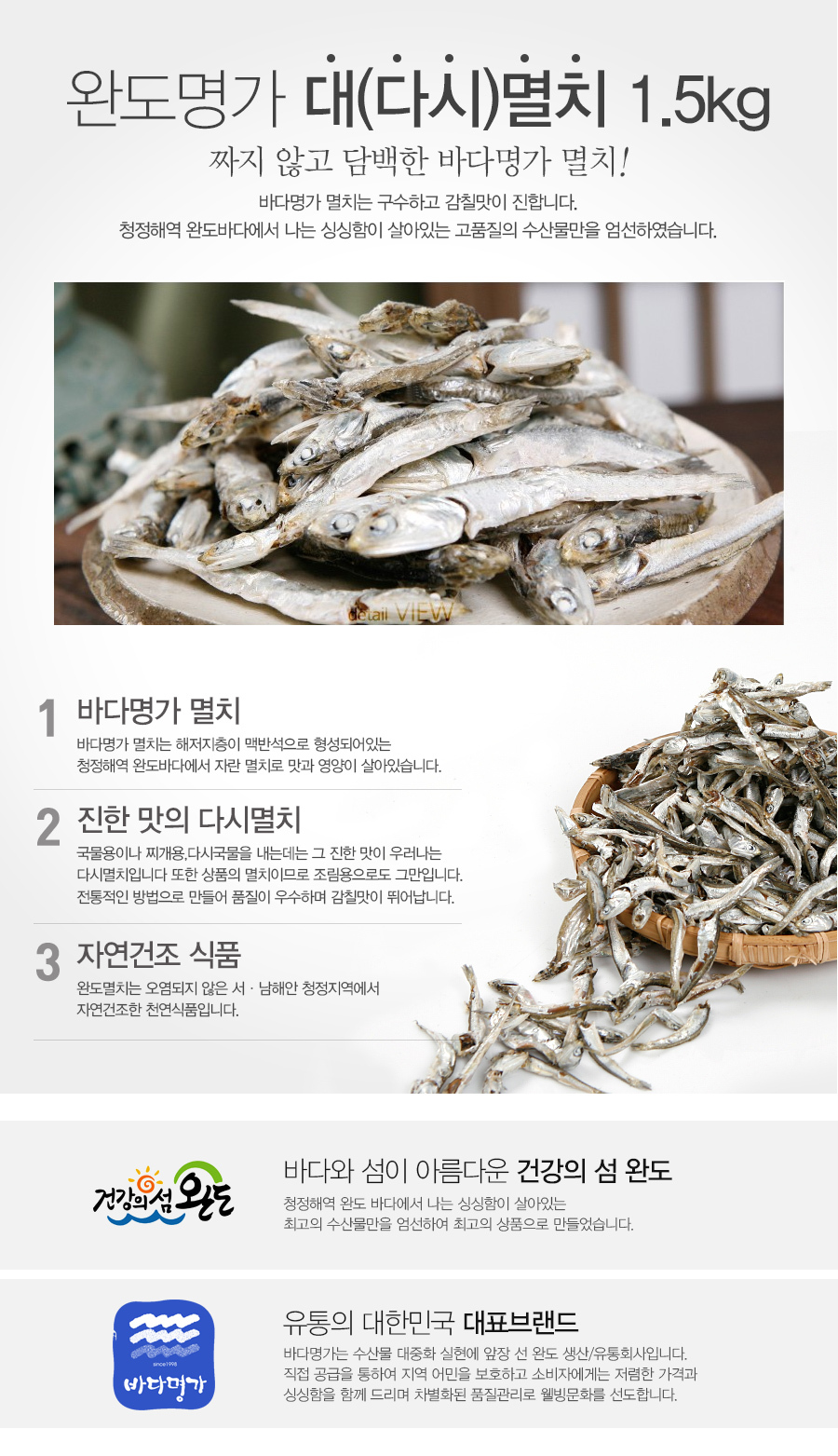 - 품목 또는 명칭: 대(다시)멸치 1.5kg / 내용(구성)량 : 상세설명표기