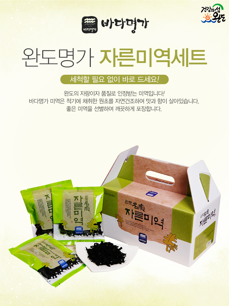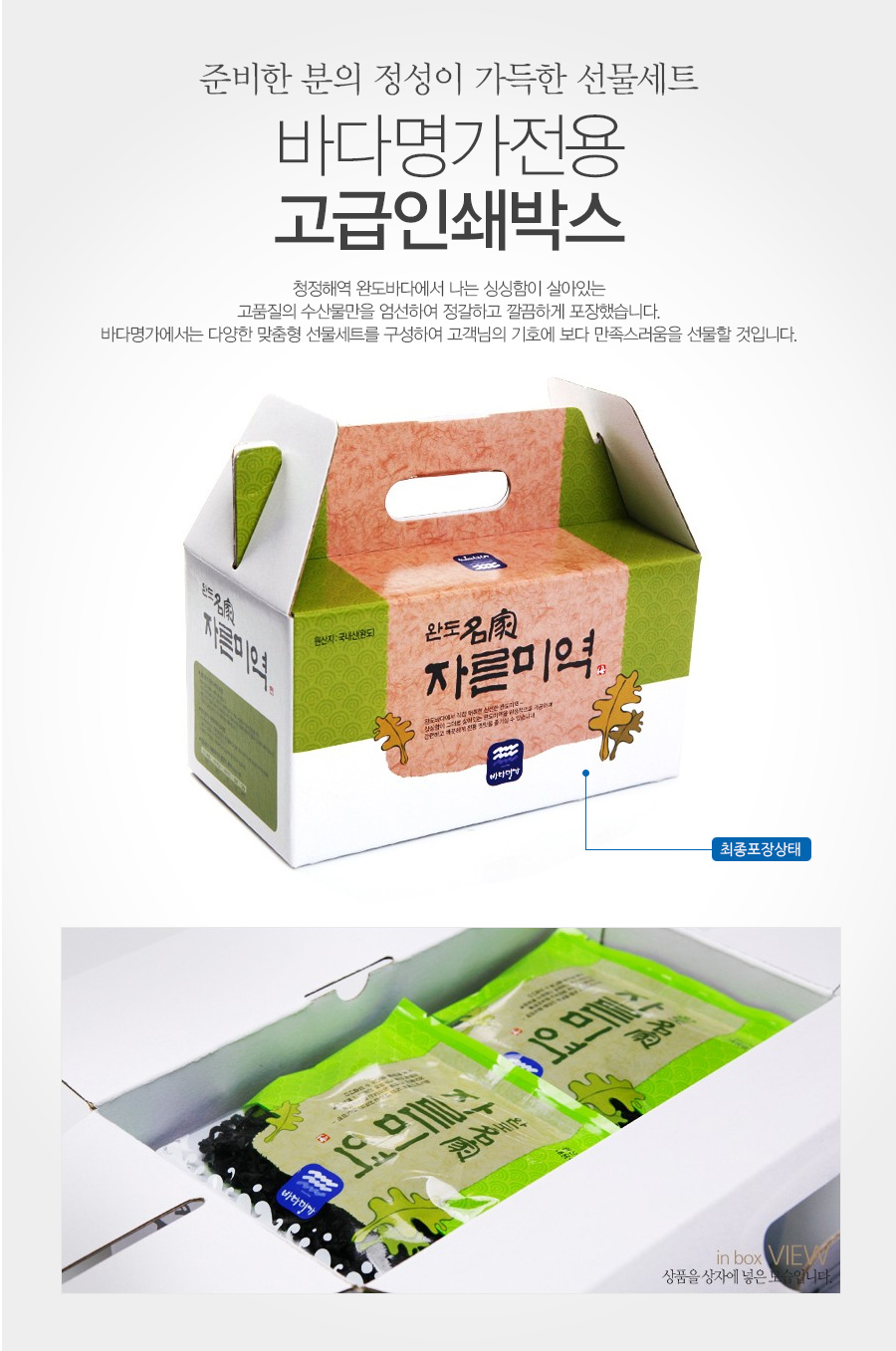 - 품목 또는 명칭: 상자커트미역 / 내용(구성)량 : 상세설명표기
