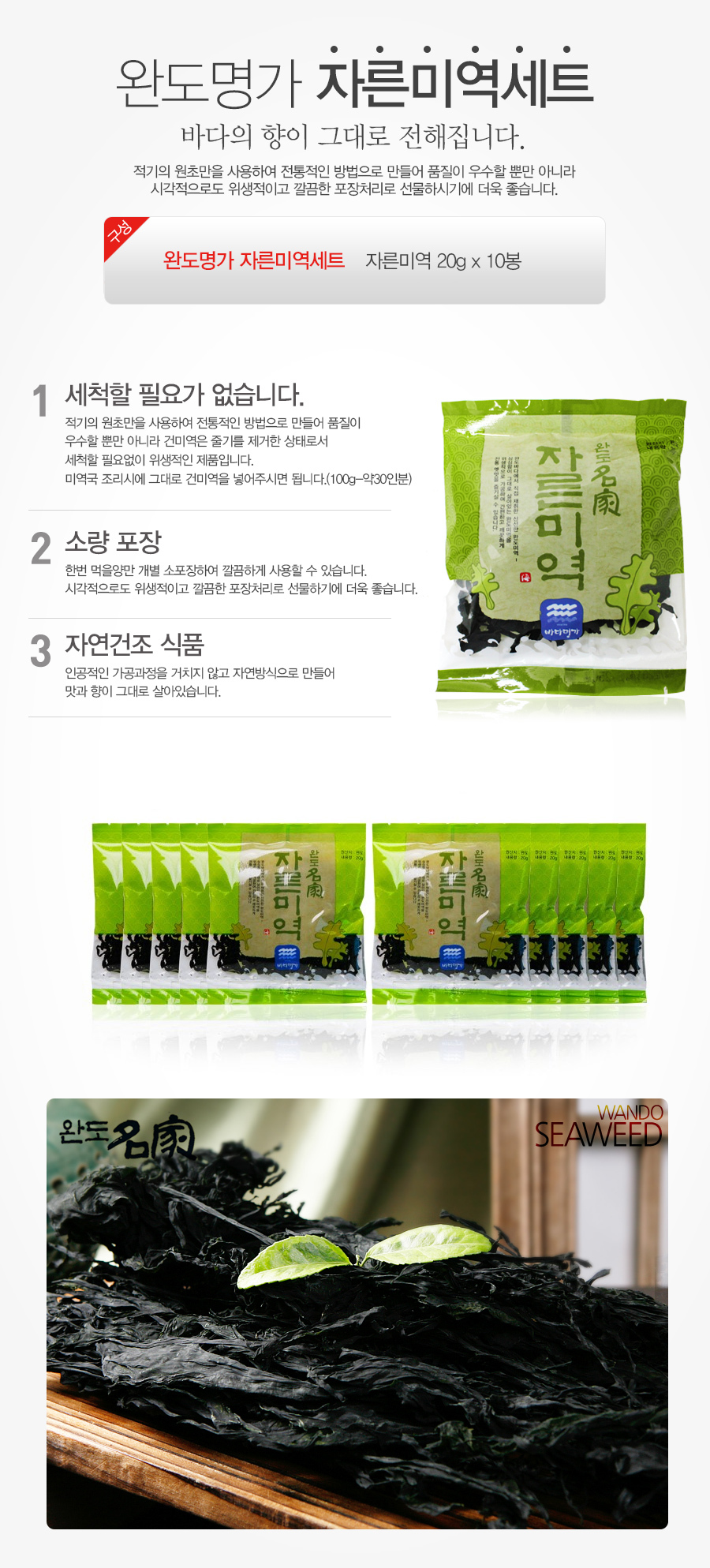 - 포장단위별 내용물의 용량(중량), 수량, 크기: 커트미역 20gx10봉