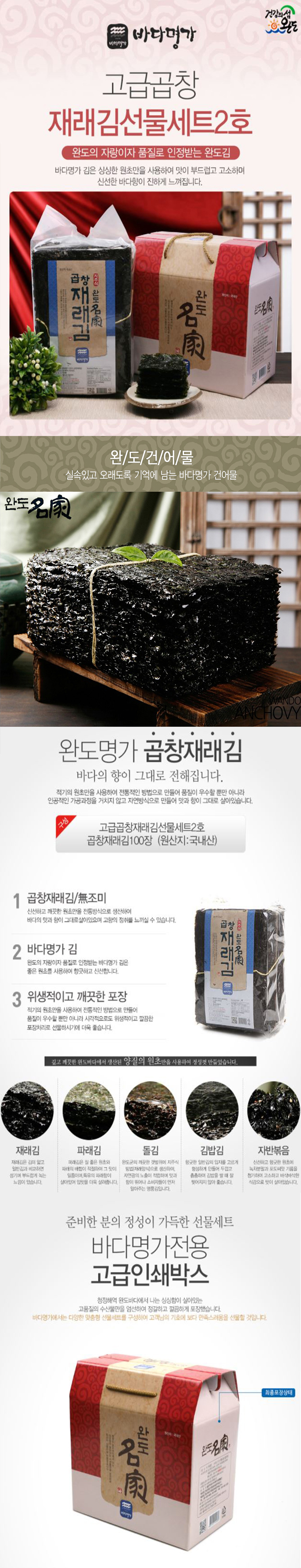 - 품목 또는 명칭: 고급곱창재래김선물세트 2호 / 내용(구성)량 : 상세설명표기