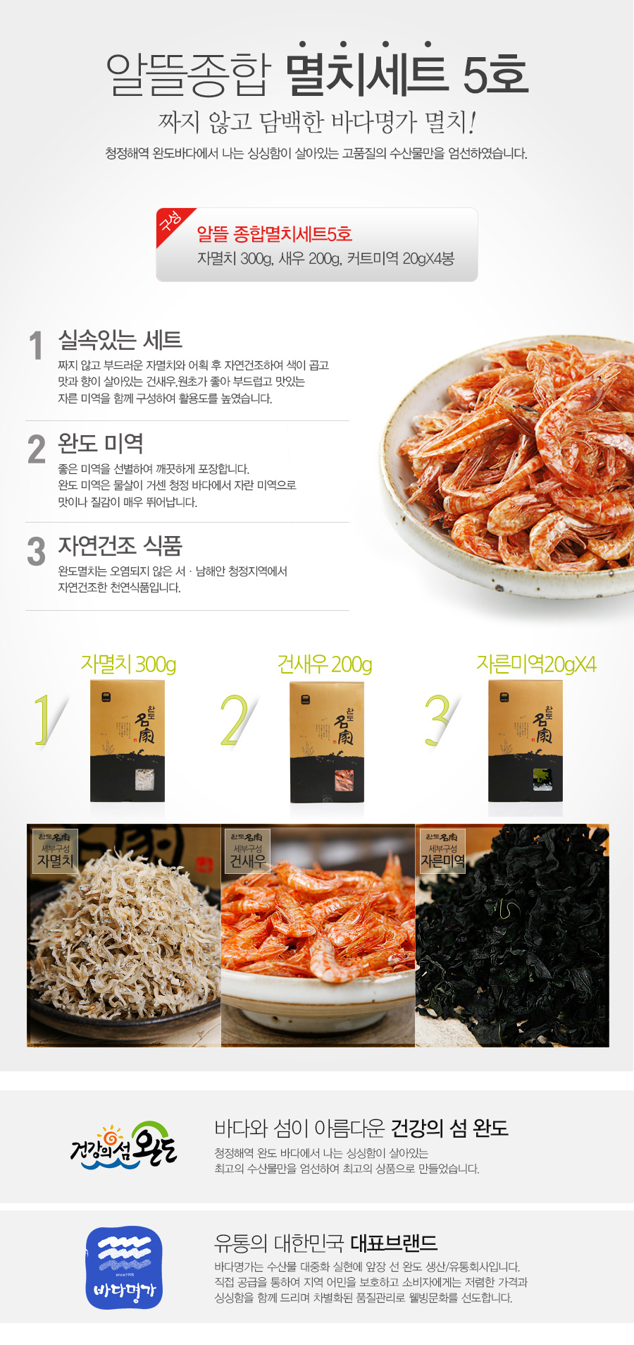 - 상품구성: 자멸치300g, 건새우200g, 커트미역20gx4봉