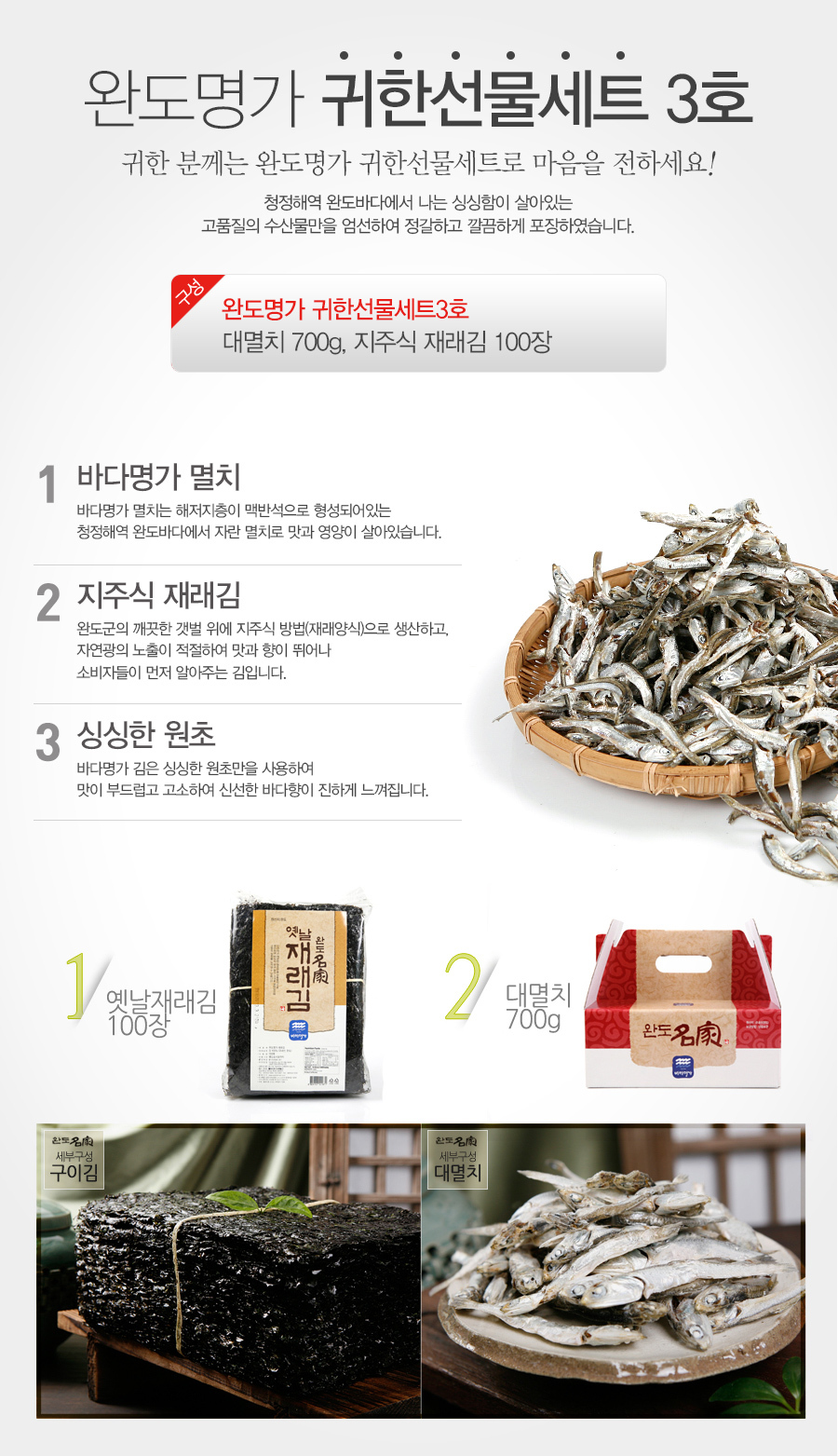 - 상품구성: 대멸치 700g, 재래김100장