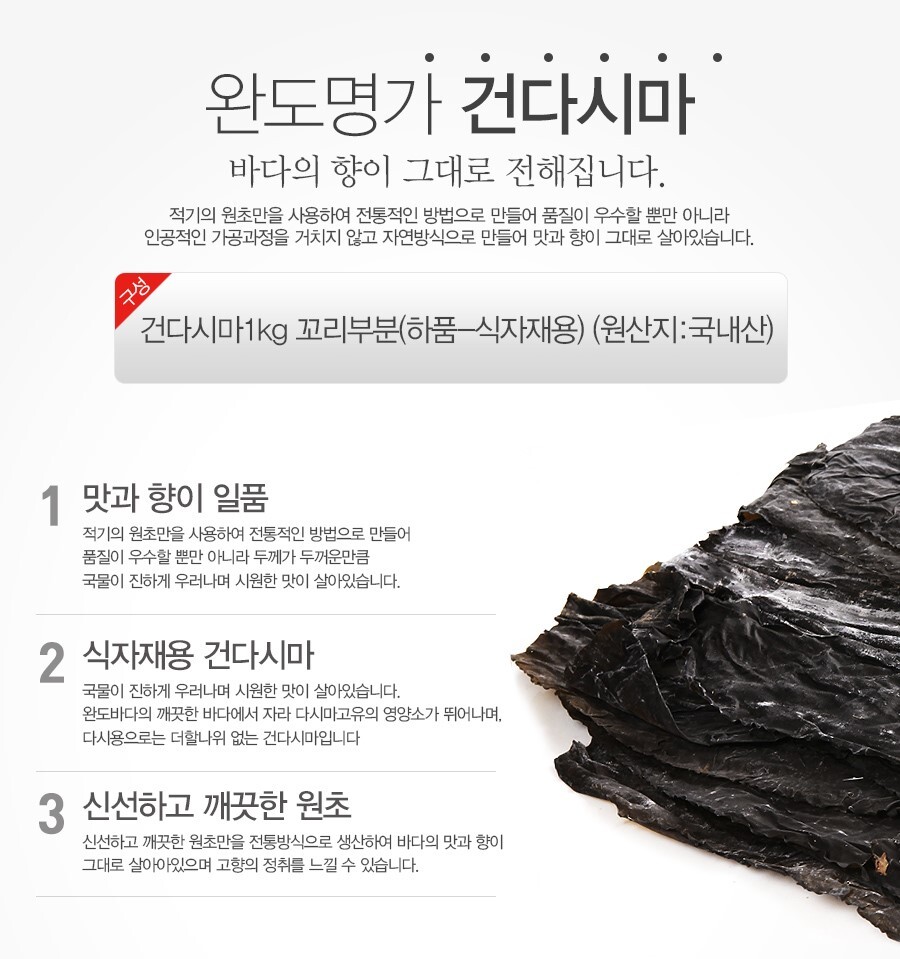- 상품구성: 건다시마-꼬리부분(하품-식자재용) / 중량 : 1kg