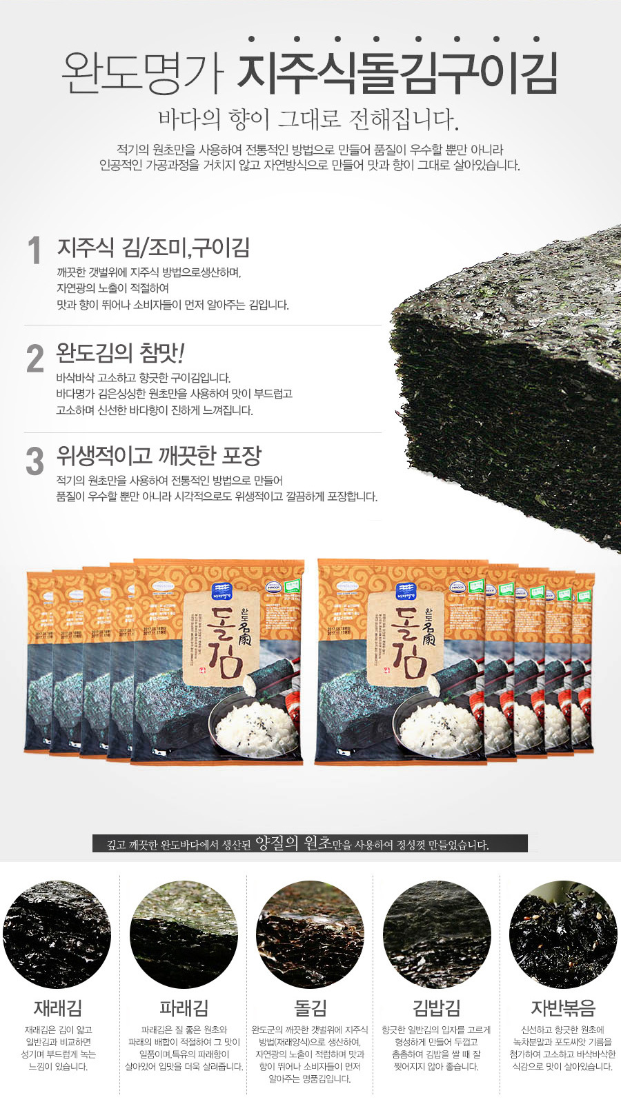 - 제품명: 돌김구이김(조미) / 중량(입수량) : 7매(27g) x 10봉