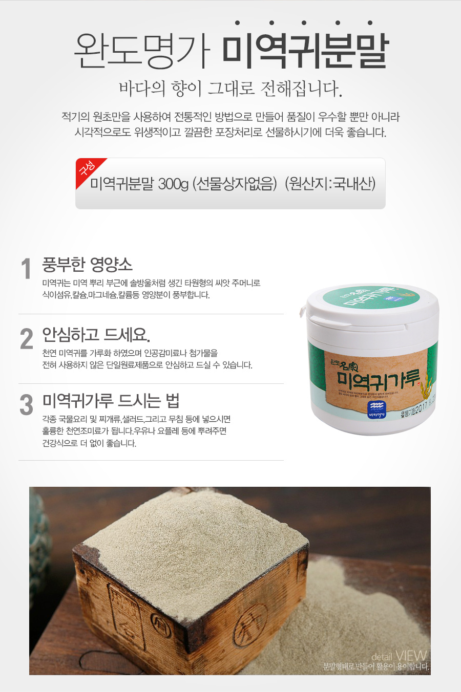 - 제품명: 미역귀분말 / 중량 : 300g