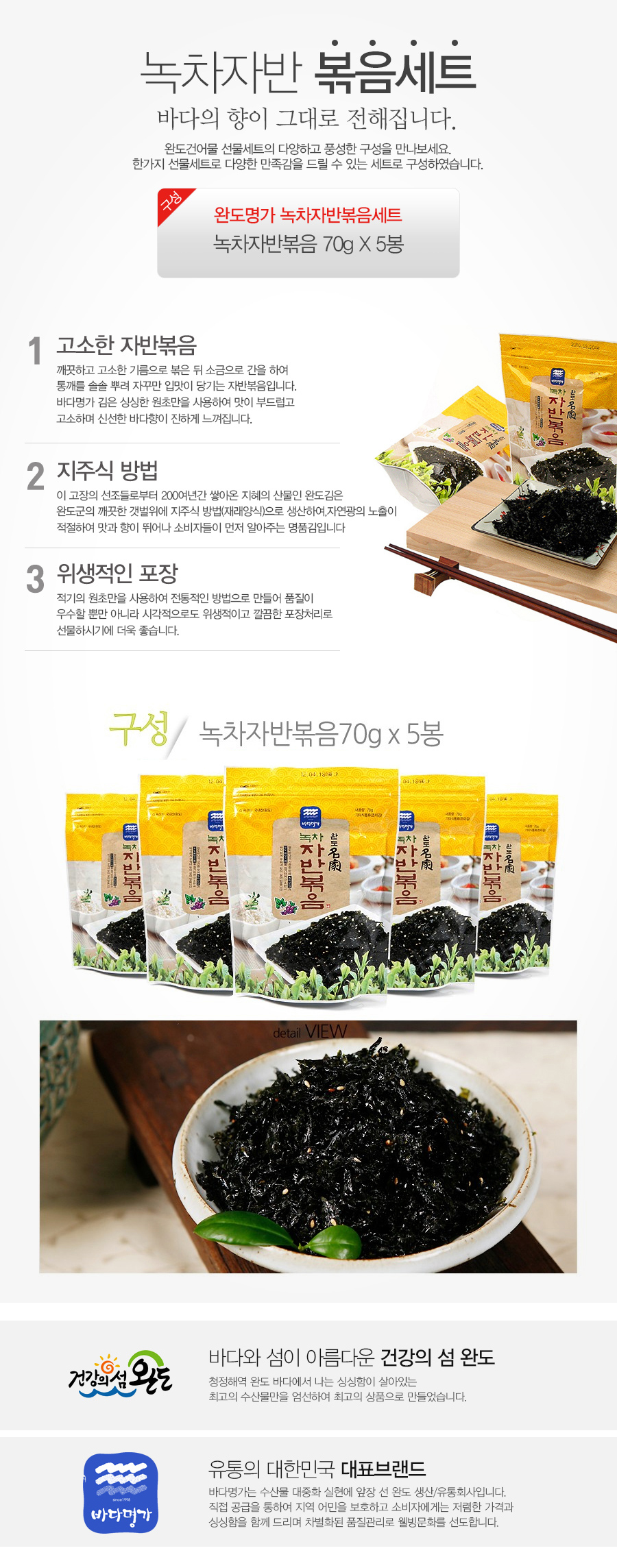 - 제품명: 녹차자반볶음세트 / 중량(입수량) : 70g x 5봉