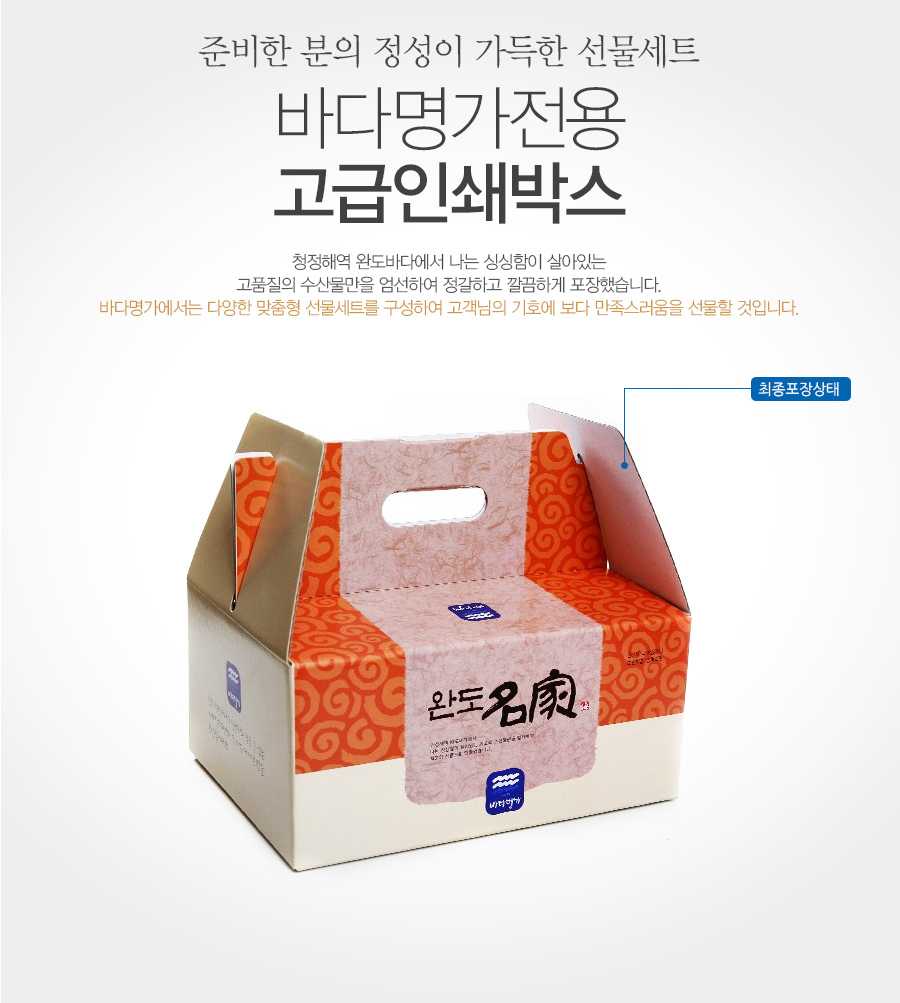 - 생산자 및 소재지: 제조원 : ㈜두원푸드 소재지 : 전남 강진군 칠량면 청자로 656-73 /판매원:주식회사 바다명가 소재지 : 전남 완도군 완도읍 농공단지4길 12