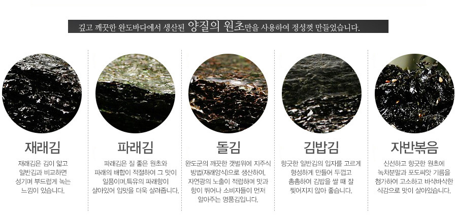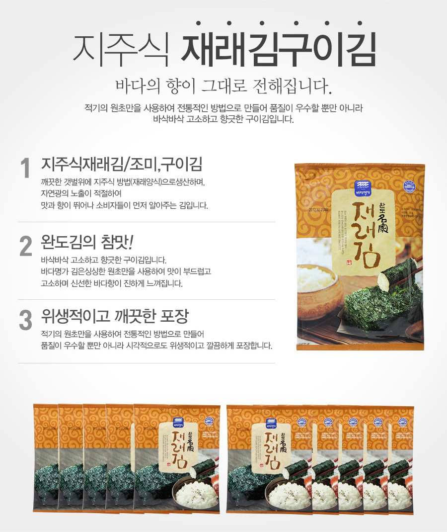 - 제품명: 재래구이김(조미) / 중량(입수량) : 7매(27g) x 10봉
