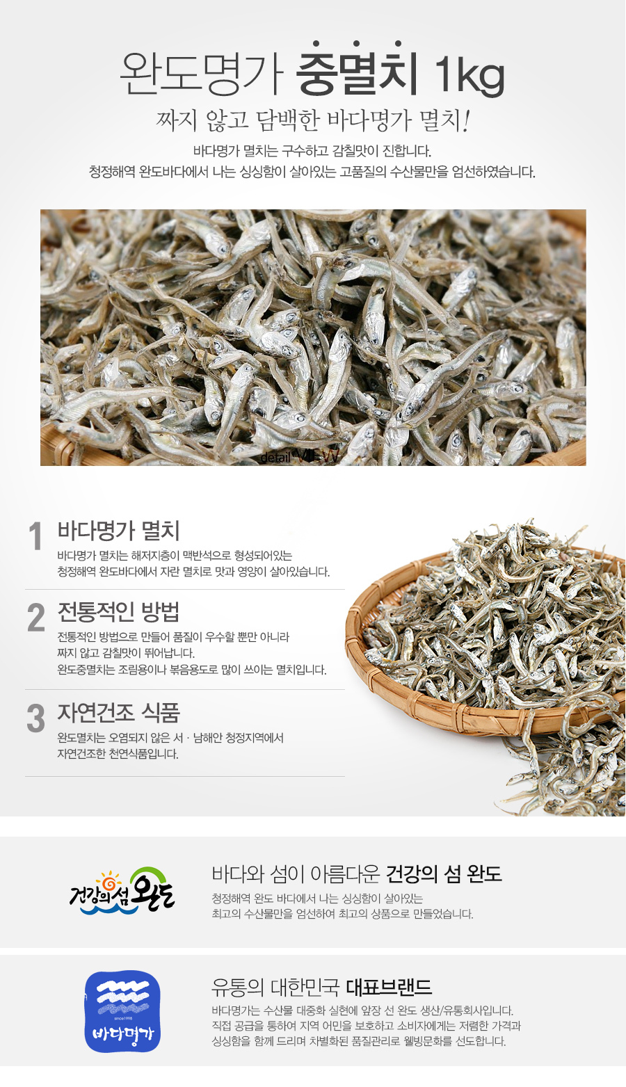 - 품목 또는 명칭: 중멸치 1kg / 내용(구성)량 : 상세설명표기