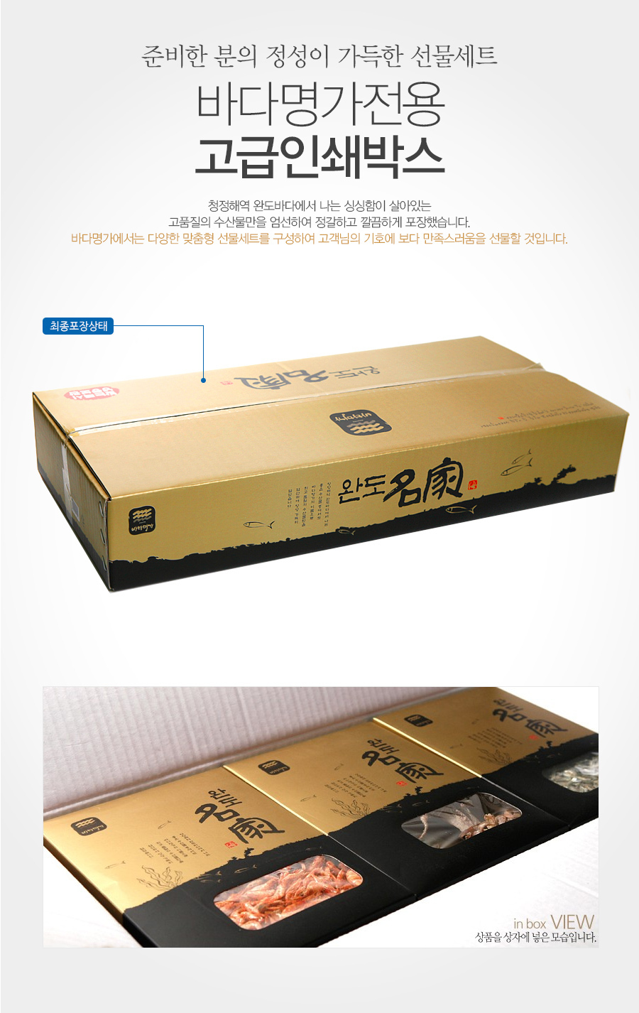 - 포장단위별 내용물의 용량(중량), 수량, 크기: 중멸치700g, 건새우500g, 반건조한치1kg